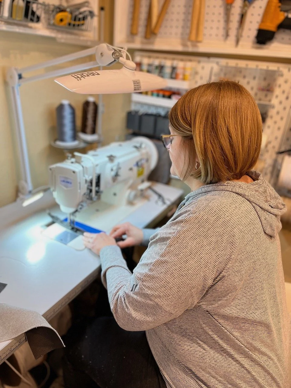 Over the past few years, Rhonda has taught a wide range of small, hands-on workshops, including leather upholstery, lampshades, French mattress cushions, and tuffets. Some have taken place in her Colorado studio; others have been by invitation at workshops, schools, and creative spaces she loves.